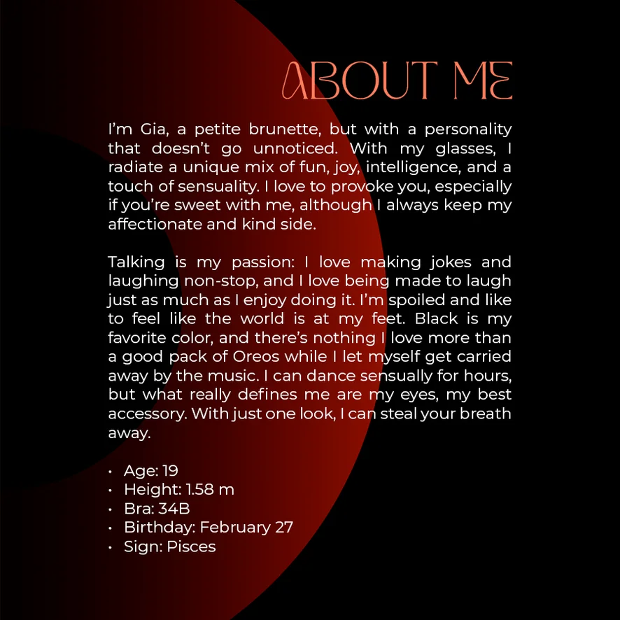Doggy Style, Spanking, Camel Toe, Heels, Erotic Dance, Ahegao, Fingering, Dirty Talk, Striptease, Foot Fetish, Topless, Outdoor, Tittyfuck, Nylon, Jerk-off Instruction, Deepthroat, Blowjob