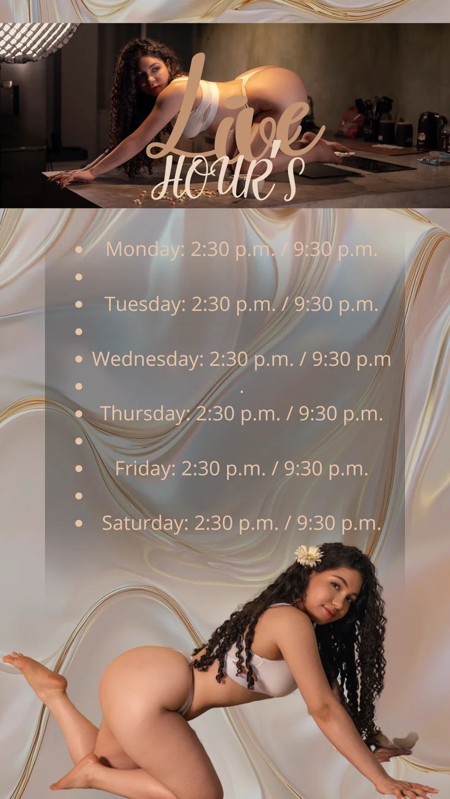 Striptease, Flashing, Cowgirl, Twerk, Doggy Style, Ahegao, Spanking, Erotic Dance, Camel Toe, Heels, Topless, Foot Fetish, Sex Toys, Nipple Toys, Creampie, Fingering, Dildo or Vibrator, Blowjob, Masturbation, Tittyfuck, Handjob, Oil Show, Facesitting, Humiliation, Role Play, Anal Toys, Anal, Cuckold, Dirty Talk, Double Penetration, Jerk-off Instruction, Orgasm, Hardcore, Squirt, Deepthroat
